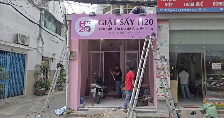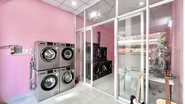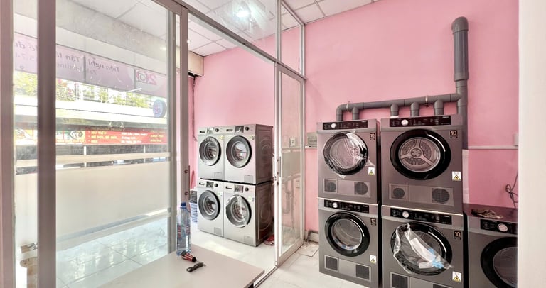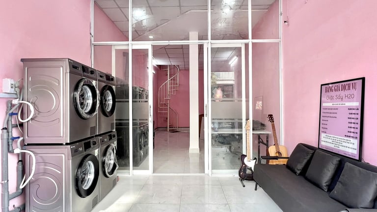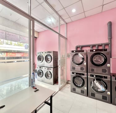 Mang đến dịch vụ giặt sấy tiện lợi, giao nhận tận nơi với phong cách trẻ trung, màu hồng đặc trưng.